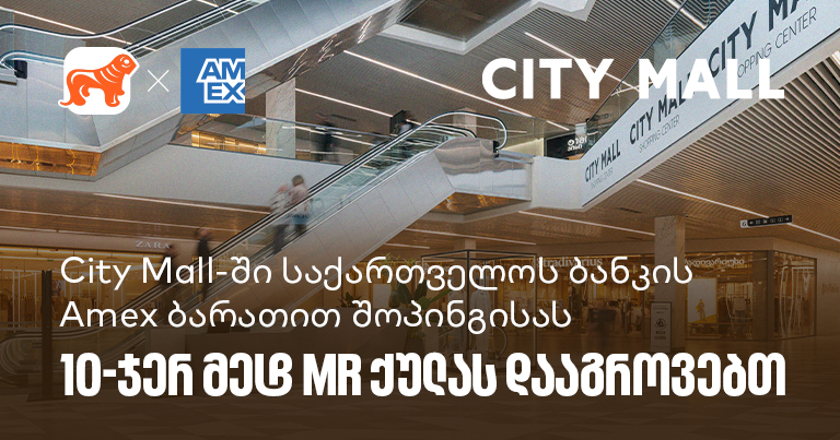 საქართველოს ბანკი მომხმარებლებისთვის მრავალფეროვანი შეთავაზებების შექმნას განაგრძობს. ამჯერად, ბანკი საკრედიტო Amex ბარათის მფლობელებს City Mall-ში სპეციალურ აქციას სთავაზობს.