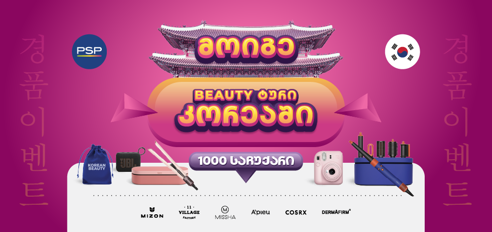 PSP გისურვებთ წარმატებას და 1000 პრიზიდან ერთ-ერთის ან სამხრეთ კორეაში დაუვიწყარ Beauty ტურის მოგებას!